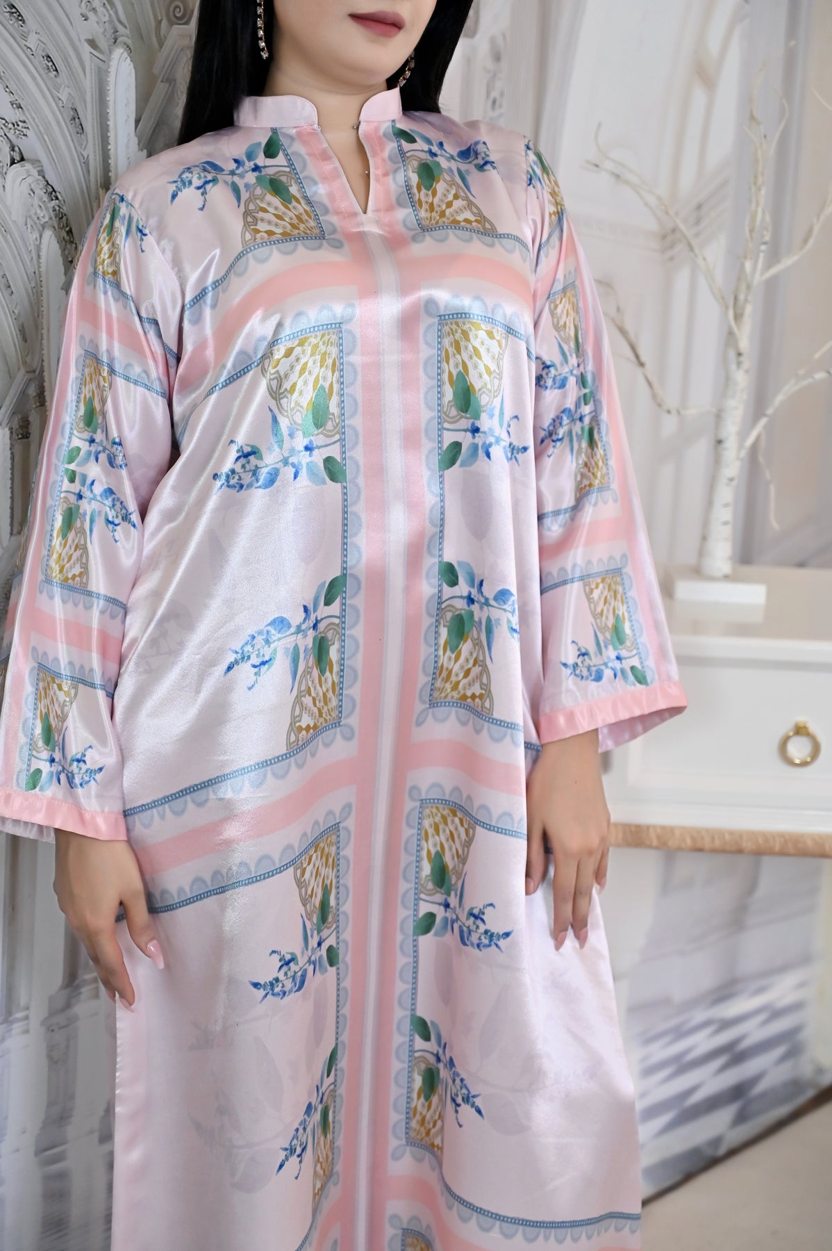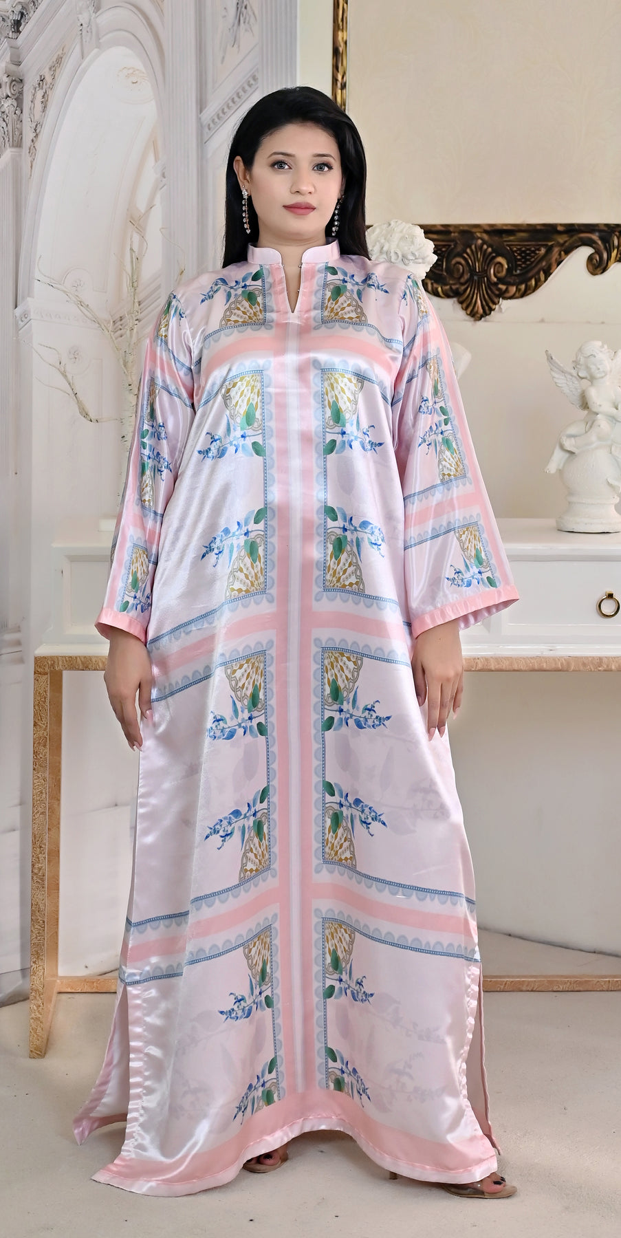 The Luna Blush Kaftan, a masterpiece that embodies softness, grace, and timeless beauty. It is designed for the women who appreciate elegance in every detail. With its side slit design and wide sleeves, this kaftan is as practical as it is luxurious — perfect for special occasions, gatherings, or a touch of everyday luxury.